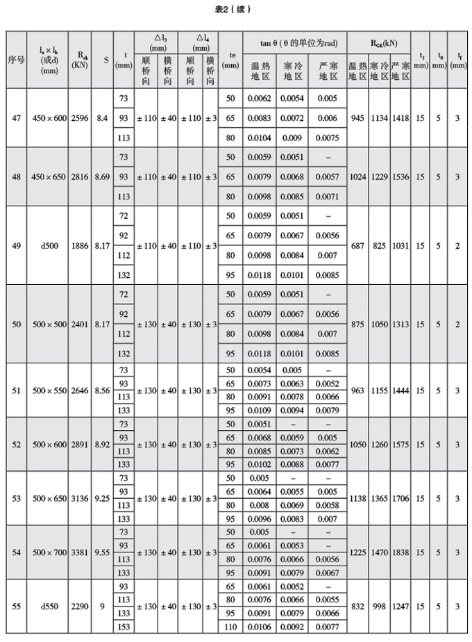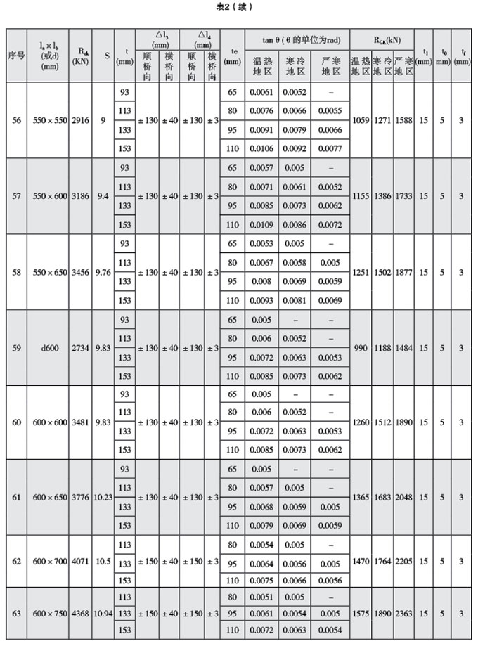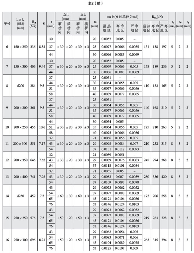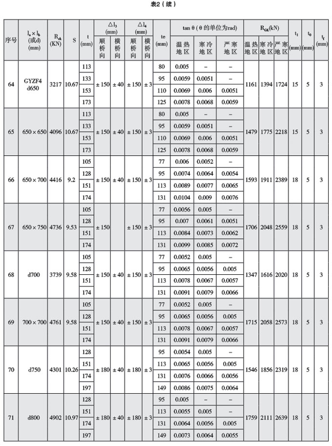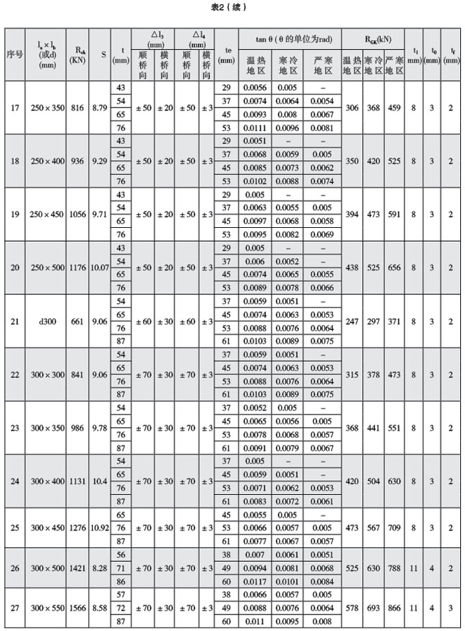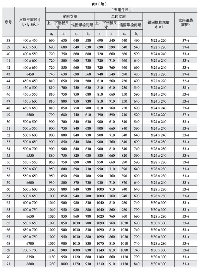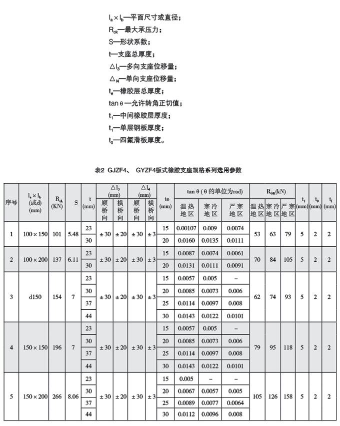 2.3GJZF4、GYZF4規(guī)格系列支座主要附近尺寸