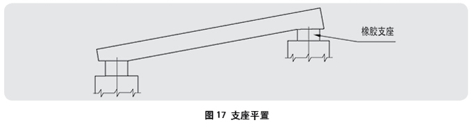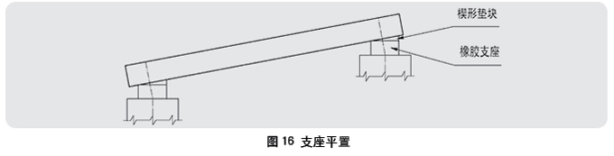 4.1普通板式橡膠支座的安裝 7.1.1現(xiàn)澆梁橡膠支座的安裝 A、先將支座墊石頂面清理干凈,若激臺(tái)墊石的標(biāo)高差距過(guò)大,可用水泥砂漿調(diào)整。 B、在支座墊石上按設(shè)計(jì)圖標(biāo)出支座位置中心線,同時(shí)在橡膠支座上也標(biāo)出十字交叉中心線,將橡膠支座 的中心線與墊石中心線相吻合,支座即就位準(zhǔn)確。 C、在澆注混凝土梁體前,在橡肢支座上設(shè)一塊比支座平面稍大的支承鋼板、鋼板焊錫固筋與梁體連接。 將支承鋼板視為現(xiàn)澆梁模板的一部分進(jìn)行澆注。為防止漏漿,可在支承鋼板與模板四周空隙處,用棉砂、油灰 或其它物質(zhì)填設(shè)。 8.1.2預(yù)制梁橡膠支座的安裝 A、首先將橡膠支座按設(shè)計(jì)要求直接放置在支座墊石上,墊石上面必須亊先清理干凈,并保證平整,然后 將上部構(gòu)造直接安放在支座上。 B、架梁落梁安裝時(shí)應(yīng)平穩(wěn),防止支座偏心受壓或產(chǎn)生初始剪切變形。 C、在T型梁安裝時(shí),若支座比梁肋底寬(應(yīng)盡量避免),則應(yīng)在支座與梁底之間用鋼筋混凝土墊塊或厚 鋼板作過(guò)渡,以免橡膠支座受力面積減少造成應(yīng)力集中。 8.1.3普通板式橡膠支座的安裝亊項(xiàng) A、支座安裝時(shí),必須保證位置準(zhǔn)確,調(diào)整時(shí),避免產(chǎn)生過(guò)大的剪切變形,安裝時(shí)間最好在相當(dāng)于全年平 均氣湛時(shí)進(jìn)行,以保證因低溫或高溫時(shí)造成支座偏離中心的位置不致過(guò)大,減少剪切變形。 如必須在高溫或低溫時(shí)安裝,可采取以下措施。 a待到全年平均氣溫時(shí),頂起主梁、將支座調(diào)整到中心位置。 b在安裝時(shí)根據(jù)當(dāng)時(shí)氣湛計(jì)算使支座產(chǎn)生預(yù)變形。 c也可以在設(shè)計(jì)選用橡膠支座時(shí),適當(dāng)增高支座髙度,使其比原設(shè)計(jì)支座的剪切變形量大。 B、要保證支座和墩臺(tái)及主梁緊密結(jié)合成一體,與橡膠支座接觸的上部構(gòu)造底面和墩臺(tái)面必須清潔平整。 如不平整要用水泥砂漿找平。 C、使用普通板式橡膠支座一般沒(méi)用固定纗與活動(dòng)端之分,使用等髙支座時(shí),上部構(gòu)造的水平位移由同一 片梁兩纗支座的剪切變形共同完成,各承擔(dān)一半。也可用厚度較小的橡膠支座作固定支座。 D、當(dāng)梁體在縱向有坡度時(shí),可按以下幾種情況分別處理。 a梁體縱坡<=1%時(shí),縱坡由支座墊石調(diào)整支座斜置。如圖15 b梁體縱坡時(shí),在梁底與支座之間粘結(jié)一塊與梁縱坡一致的楔型墊塊,支座平置。如圖16 也可采用梁底一端削去與坡度相一致的一角,在另一端補(bǔ)上與削去部分相等的一角,使支座平置。如圖17 C為了方便施工可直接選用坡度板式橡膠支座。 E支座安裝時(shí),要考慮到以后更換調(diào)整橡膠支座的需要,通常采用在支座周邊空間設(shè)置各種凹樁以便安 放千斤頂。4.2聚四氟乙烯滑板式橡膠支座的安裝 7.2.1四氟板式橡膠支座的構(gòu)造與聯(lián)接 a構(gòu)造:四氟支座的整體結(jié)構(gòu)有“封閉型”和“簡(jiǎn)易型”兩種。對(duì)城市橋梁及紫外線輯射、空氣污染與 粉塵嚴(yán)重地區(qū),選用封閉型結(jié)構(gòu),其它場(chǎng)合可采用簡(jiǎn)易型。簡(jiǎn)易型和封閉型分別見圖18和圖19。 b聯(lián)接:四氟板式橡膠支座下鋼板的聯(lián)接可在激臺(tái)支承墊石上頂留相應(yīng)凹坑。架梁時(shí)下鋼板用環(huán)氧樹脂砂 漿粘結(jié)于坑內(nèi),四氟板式橡膠支座的上鋼板澆梁施工時(shí),可采用鋼板焊描固筋一同澆注。預(yù)制梁施工時(shí),上鋼 板用環(huán)氣樹脂砂漿與梁底粘結(jié)。 環(huán)氧樹臘砂漿配合比(重量比) 環(huán)氧樹臘(6101 ) : 100,乙二胺:8—10或三乙烯四胺:8—12 苯二甲酸二丁脂:12 水泥或石英粉或細(xì)砂:250-300 8.2.2四氟板式支座安裝應(yīng)注意亊項(xiàng) 四氟板式支座的安裝方法與普通板式支座基本相同,但應(yīng)注意下列亊項(xiàng)。 a四氟板式支座系作活動(dòng)支座用,應(yīng)同普通板式支座(作固定支座)配套使用。安裝時(shí)應(yīng)精心細(xì)致。 支座應(yīng)按設(shè)計(jì)支承中心準(zhǔn)確就位。梁底鋼板與支承墊石(或下鋼板)頂面盡可能保持平行,同支座上下 面全部密貼;同一片梁的各個(gè)支座位置應(yīng)在同一平面上;避免支座的偏受壓、不均勻支承與個(gè)別脫空現(xiàn)象。 b與四氟板接觸的不銹鋼板表面不允許有損傷、拉毛現(xiàn)象;以免增大摩擦系數(shù)及損壞四氟板。 c支座四氟面的儲(chǔ)油凹坑內(nèi),安裝時(shí)應(yīng)涂刷不易揮發(fā)的“5201桂脂”作潤(rùn)滑劑以降低摩擦系數(shù)。 d支座與不銹鋼板的位置視安裝時(shí)溫度而定,若不銹鋼板有足夠長(zhǎng)度,則任何季節(jié)都可使支座居不銹鋼板 中心位置。 e落梁時(shí),為防止梁與支座發(fā)生縱橫向滑移,宜用木制三角勢(shì)塊在梁體兩側(cè)加以定位,待落梁工作全部完 畢后拆除。 f上部結(jié)構(gòu)為連續(xù)體系時(shí),固定端橡膠支座為提高可靠度,防止固定支座的縱橫滑移,可設(shè)置防爬裝置。